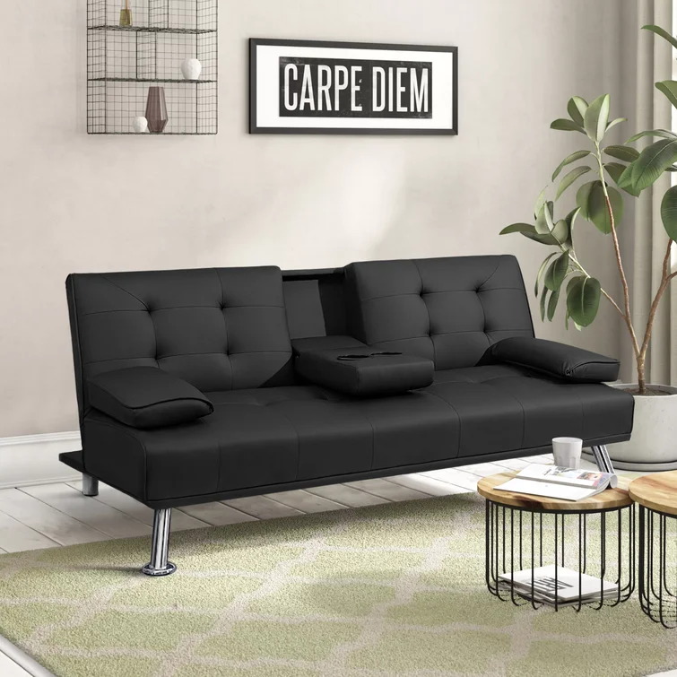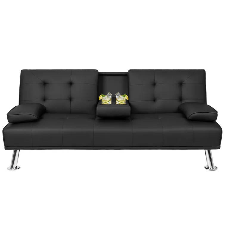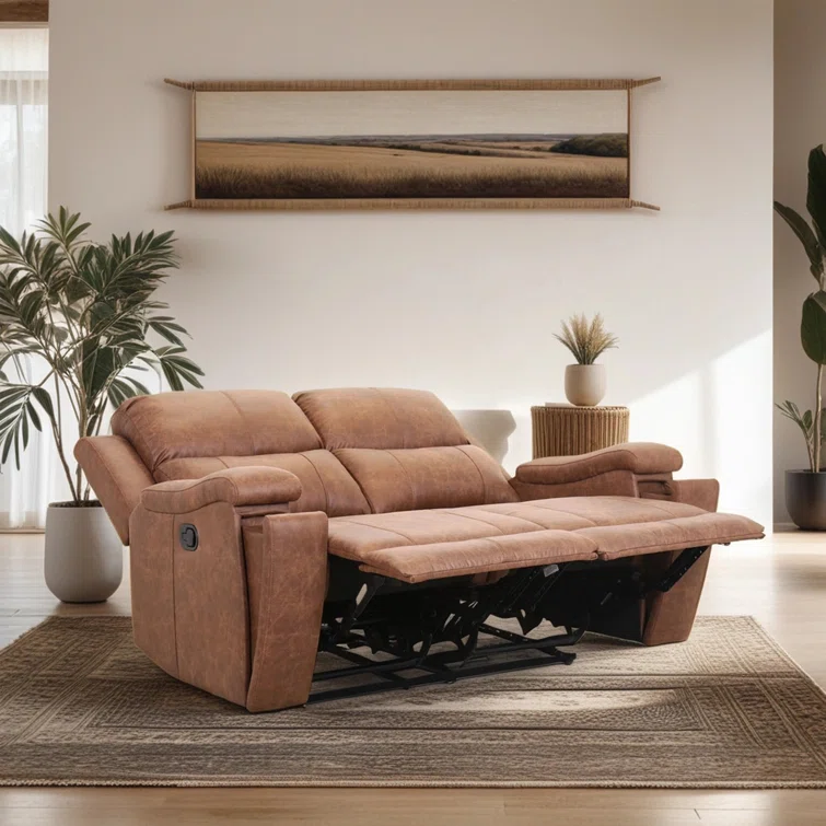 61" Wide Leather Manual Recliner Loveseat Sofa with Cup Holders (Set of 2)