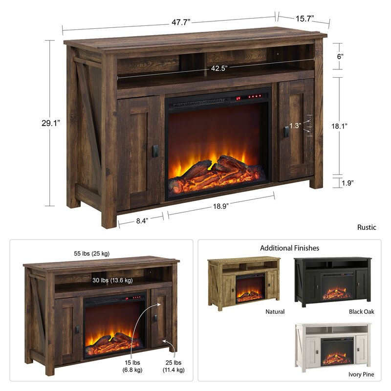 Euripides TV Stand for TVs up to 50" with Electric Fireplace Included