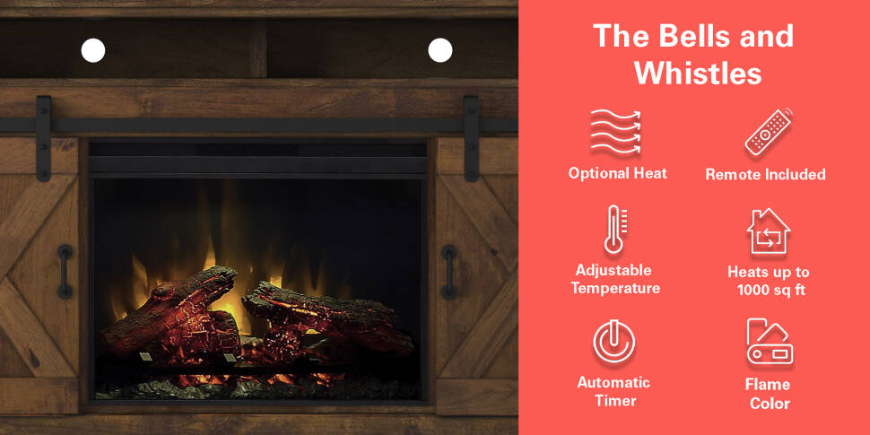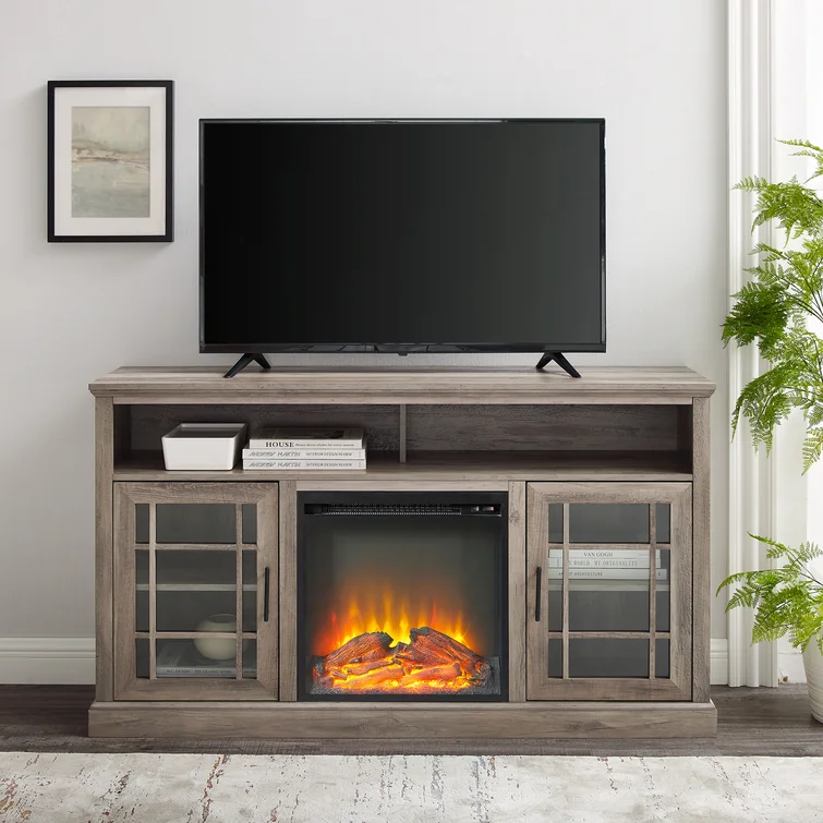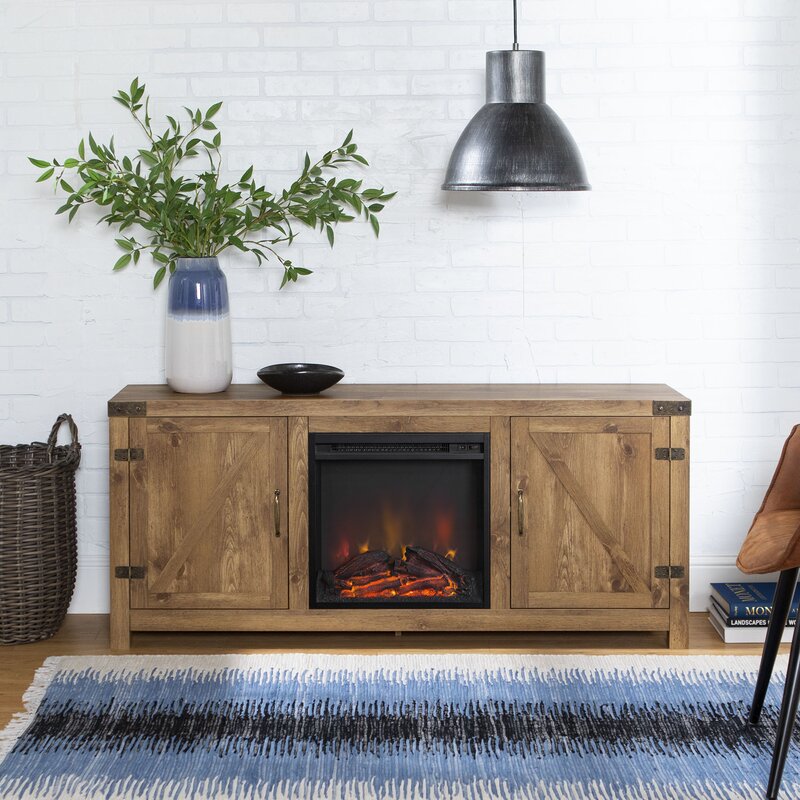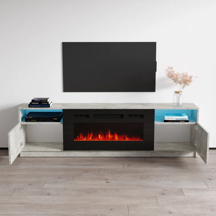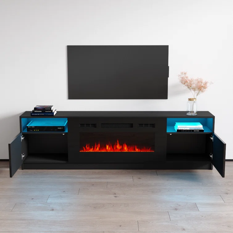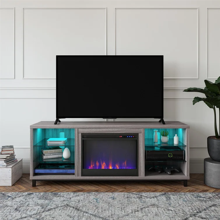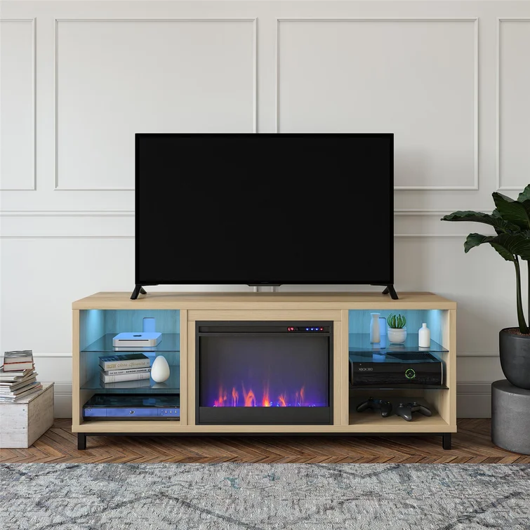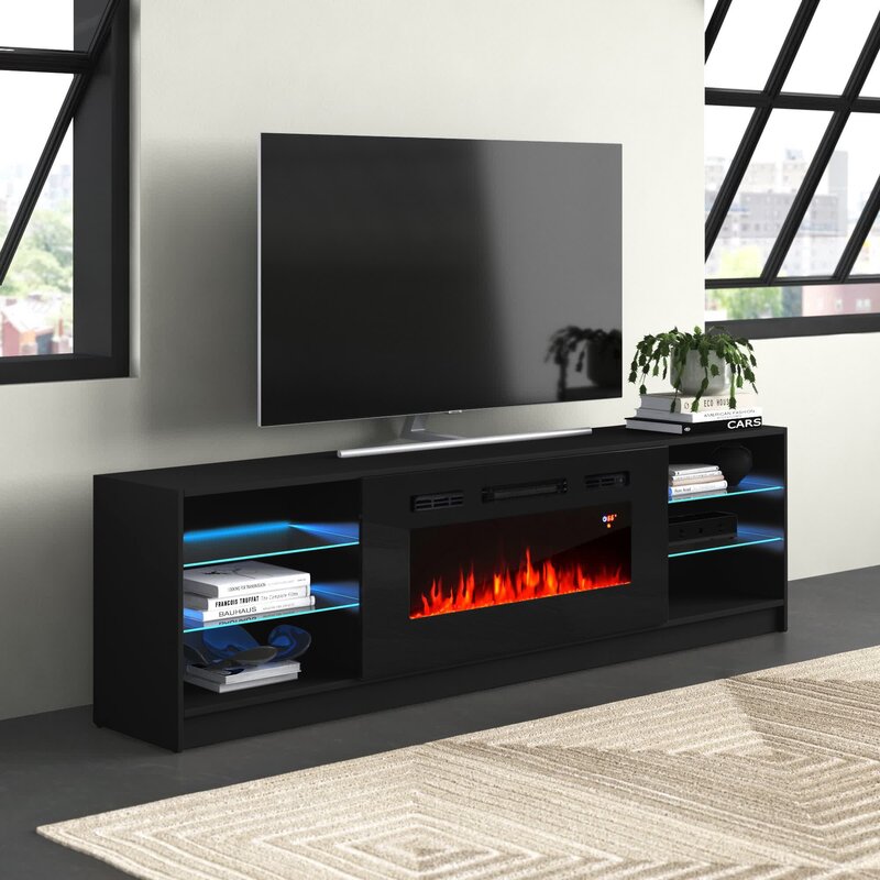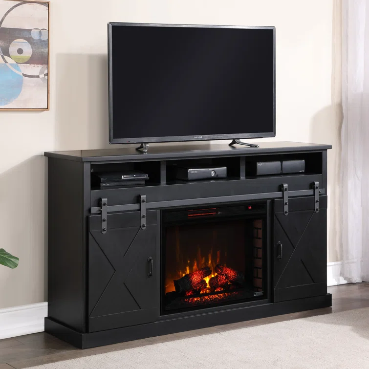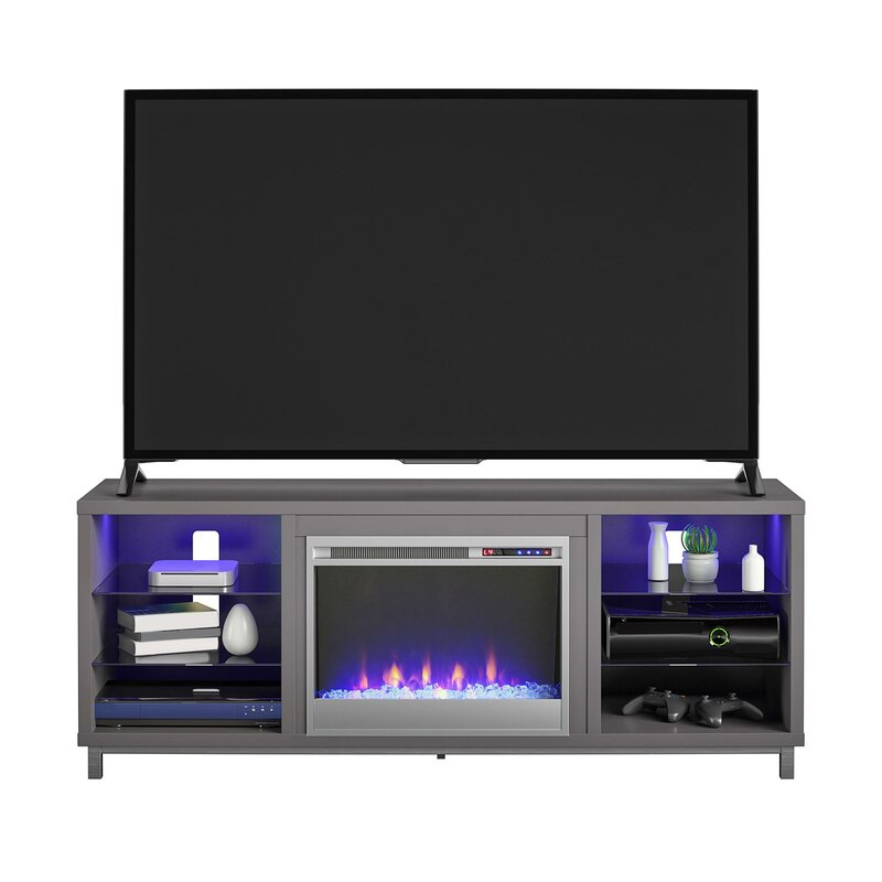 Hungerford 66" Fully Assembled TV Stand with Electric Fireplace, Fits TVs up to 70"